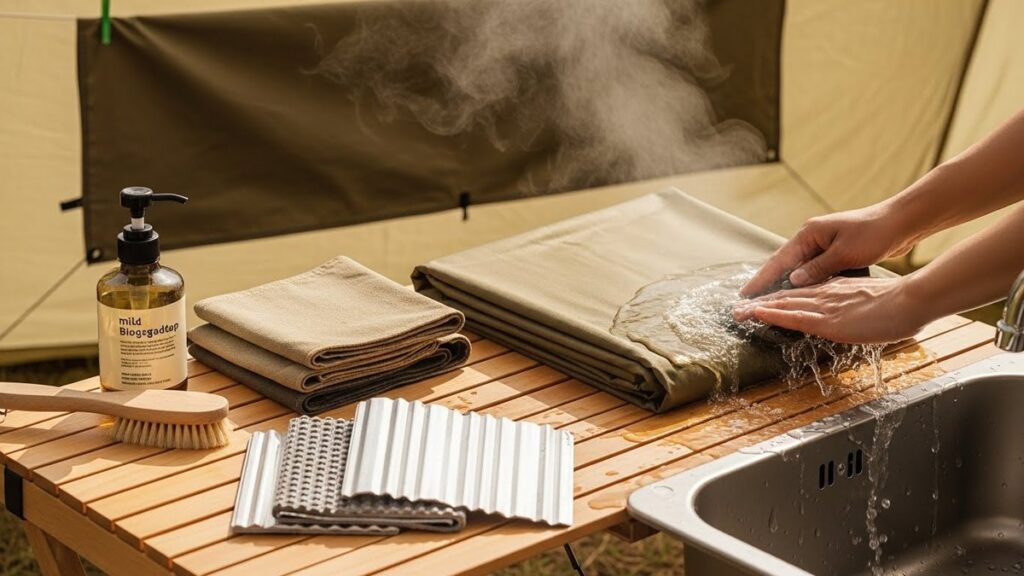 焚き火シートの正しい洗い方ガイド|素材別の手入れと乾燥のコツ
