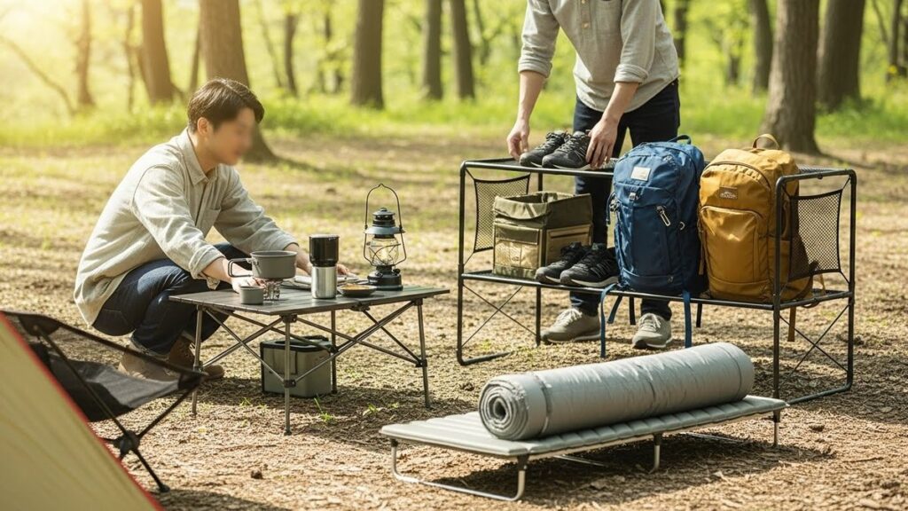 キャンプで荷物を直置きしないだけで快適度が激変!守るべきアイテムと安定&省スペースの工夫