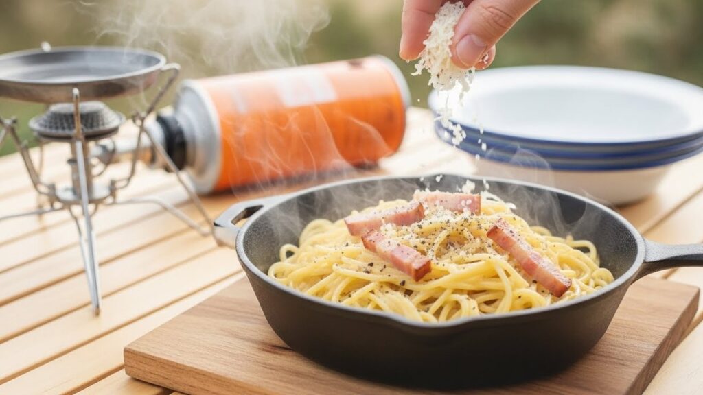 キャンプで簡単プロの味を再現!短時間で作れるカルボナーラのコツ