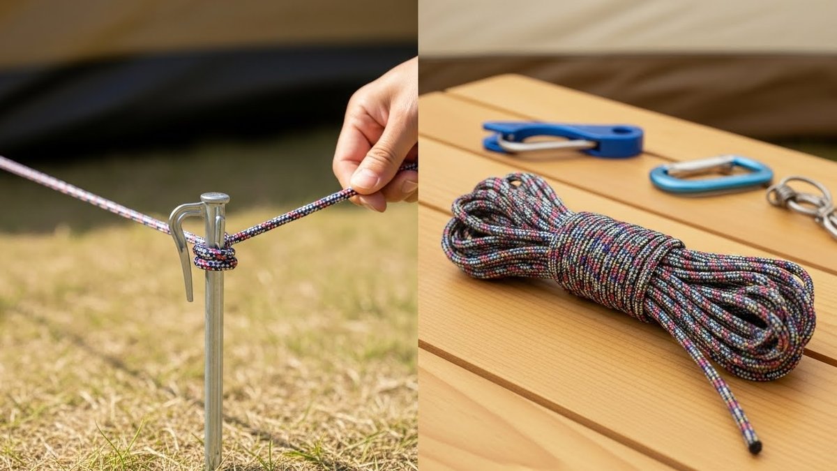軽量化を重視するなら細めのパラコードも選択肢になります。複数本を併用してリスクを分散する方法もあります。ペグ打ちや張り位置の調整時はロープの角度や摩擦点に注意してください。