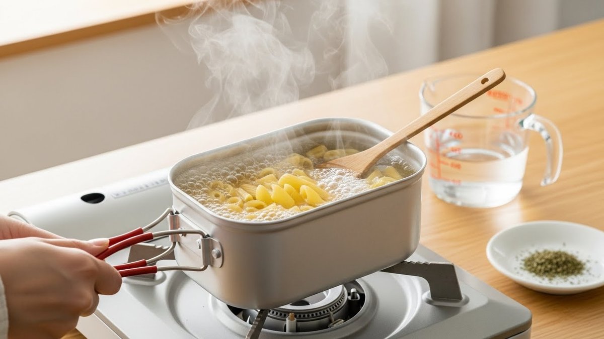 湯切り不要の調理では、水量と手順を守ることで安定した仕上がりになります。パスタの種類や分量に合わせた水の比率を覚えておくと屋外でも迷わず作れます。ここでは基本的な手順と水量の目安を紹介します。